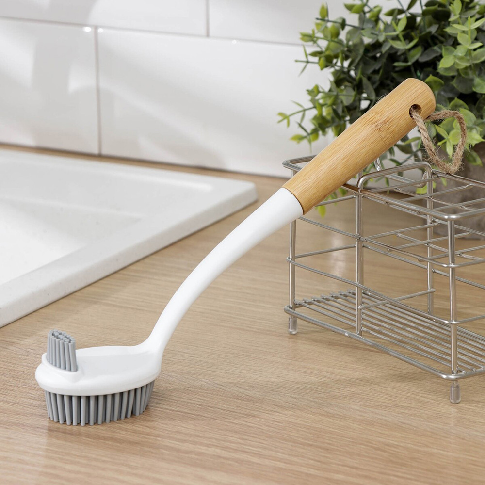 رنگ سری پلاستیک سفید و جنس دسته از چوب بامبو است.